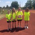 9 czerwca w Biłgoraju nasze dziewczęta potwierdziły dobrą formę i prawie w komplecie awansowały do finałów wojewódzkich Festiwalu sztafet wygrywając sztafety 4x100 w Igrzyskach zarówno w kategorii dzieci jak i młodzieży. Najpierw do boju ruszyły nasze młodsze sprinterki, które w doskonałym stylu wygrały bijąc po drodze po raz drugi rekord szkoły z czasem 57,86 s. Nasze "złotka": Karolina Małyszek, Natalia Budzyńska, Amelia Kula, Martyna Małek. Za chwilę kolejne "złote" dziewczyny czyli Julia Kuraś, Zofia Knapik, Izabela Czajka, Zuzanna Kozioł zameldowały się z nowym rekordem szkoły 59,27 s. Na najniższym stopniu podium ale bez awansu dalej uplasowały się w sztafecie "szwedzkiej" dziewczyny w składzie Natalia Budzyńska, Karolina Małyszek, Maja Omiotek, Emilia Śliwińska. Apetyt rośnie w miarę jedzenia więc liczymy na dobre miejsca w finale wojewódzkim w Lublinie. Powodzenia!! "
