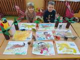 W tym tygodniu w ramach realizacji tematyki "Prehistoryczny świat", dzieci z przedszkola odbyły "podróż w czasie". Uwieńczeniem tego był "Dzień Dinozaura". W dinozaurach jest coś magicznego i wyjątkowego, coś, co przyciąga i interesuje dzieci. Przedszkolaki z zaciekawieniem przeglądały książki o dinozaurach, bawiły się przyniesionymi figurkami, układały kolorowe puzzle, segregowały dinozaury według wielkości. Z wielkim zaangażowaniem wykonały prace plastyczne, tworzyły kąciki dinozaurowe w sali, rozpoznawały i nazywały wiele gatunków dinozaurów oraz oglądały filmy edukacyjne poświęcone omawianemu tematowi. Poznały także zawód archeologa i zwiedziły muzeum Izbę Pamiątek Regionalnych. Był to niesamowity tydzień, który przeniósł nas w odległy i wciąż tajemniczy świat.