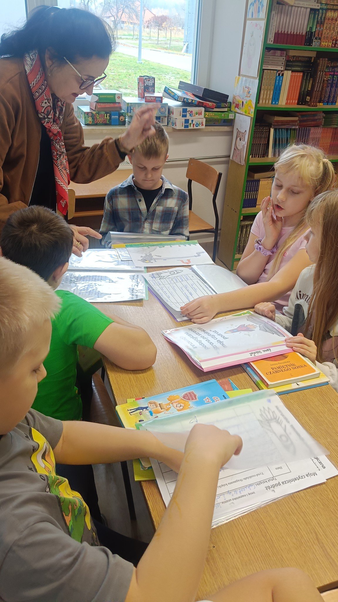 Uczniowie klasy 3a biorą udział w innowacji pedagogicznej „Strona po stronie – moja czytelnicza podróż”. Przez ostatni miesiąc z zaangażowaniem czytali wybrane przez siebie książki, wypełniali karty czytelnicze oraz metryczki lektur. Na comiesięcznym spotkaniu podsumowującym w szkolnej bibliotece opowiadali o przeczytanych książkach – dzielili się wrażeniami, mówili, co im się podobało i jakie historie szczególnie ich zaciekawiły.