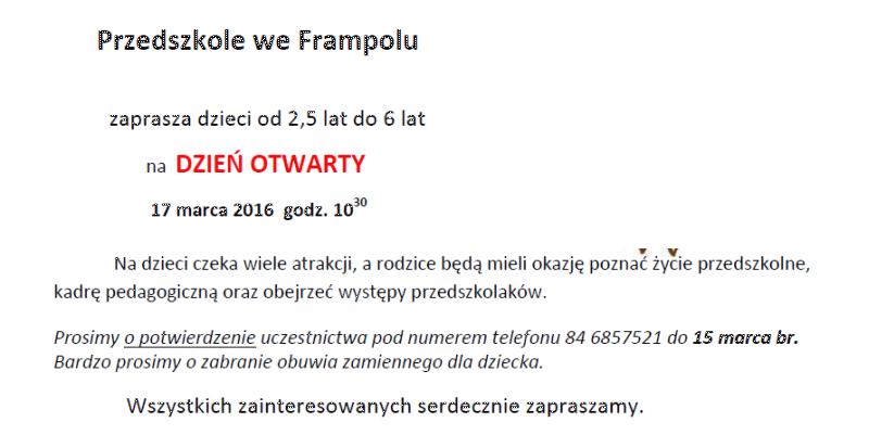 DZIEŃ OTWARTY W PRZEDSZKOLU