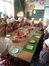 Dzień 8 listopada wpisał się na stałe do kalendarza naszej szkoły. W tym to bowiem dniu uczniowie edukacji wczesnoszkolnej organizują zdrowe śniadanie, które jest zwieńczeniem realizacji programu prozdrowotnego "Śniadanie daje moc". Promuje on zasady zdrowego odżywiania i zwiększa świadomość na temat roli pierwszego posiłku w diecie dziecka. Nieoceniona okazała się pomoc rodziców, którzy przygotowali potrzebne produkty: ciemne pieczywo, warzywa, sery, owoce, soki oraz przybory. Po dokładnym umyciu rąk dzieci zabrały się do pracy. Krojenie, smarowanie i układanie fantazyjnych stworków kanapkowych nie sprawiło im żadnych trudności. Samodzielnie przygotowane zdrowe, świeże i kolorowe kanapki uczniowie zjadali z wielkim apetytem. Wszystkim smakował również świeżutki twarożek ze szczypiorkiem i jajeczka-myszki, a na deser dzieci mogły smakować gofrów z mąki pełnoziarnistej z owocami.