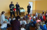 W dniu 7 listopada 2017 roku w naszym przedszkolu odbyło się spotkanie ze strażakiem mł. bryg. Pawłem Rawskim z Komendy Powiatowej Państwowej Straży Pożarnej w Biłgoraju, który przyjechał w towarzystwie Pana Jacka Harafa, Asystenta Biura Poselskiego Posła Piotra Olszówki. Goście w interesujący sposób zaprezentowali strój strażaka-ratownika oraz urządzenia używane w trakcie akcji ratowniczej. Przeprowadzili z przedszkolakami rozmowę na temat bezpiecznych zasad zachowania w domu i w przedszkolu. W trakcie dyskusji panowała miła atmosfera. Dzieci chętnie zabierały głos. Przedstawiły numery alarmowe do straży pożarnej oraz omawiały tematy związane z zagrożeniem pożarem i innymi niebezpiecznymi zdarzeniami. Pan strażak przedstawił zasady postępowania w wypadku zagrożenia. Na zakończenie dzieci mogły przymierzyć hełm strażacki. Każdy przedszkolak otrzymał odblask, który powinien nosić po zmroku, aby zwiększyć swoje bezpieczeństwo.