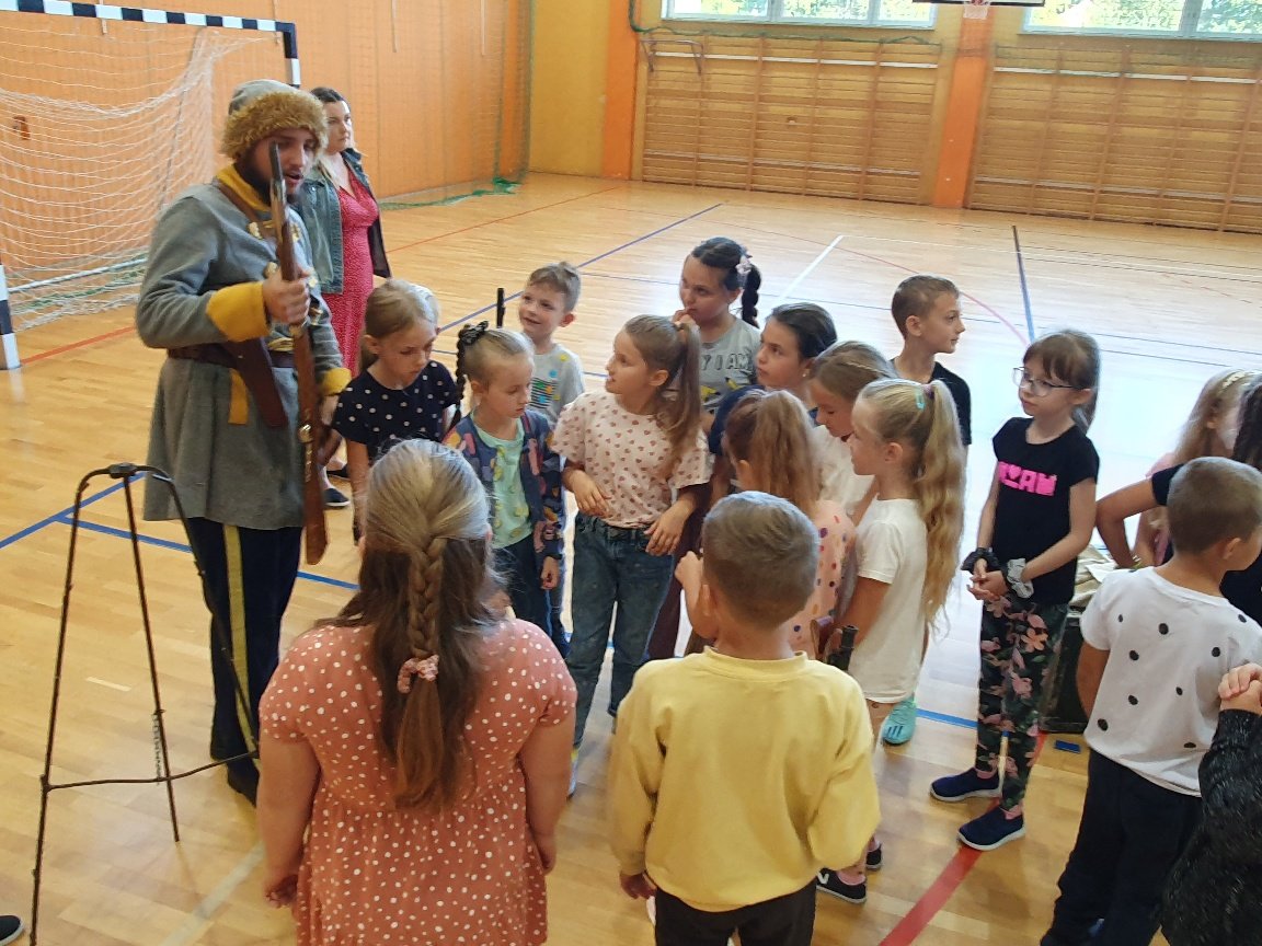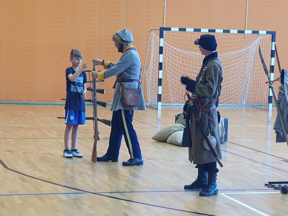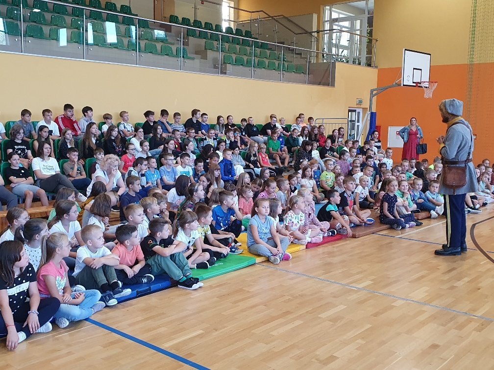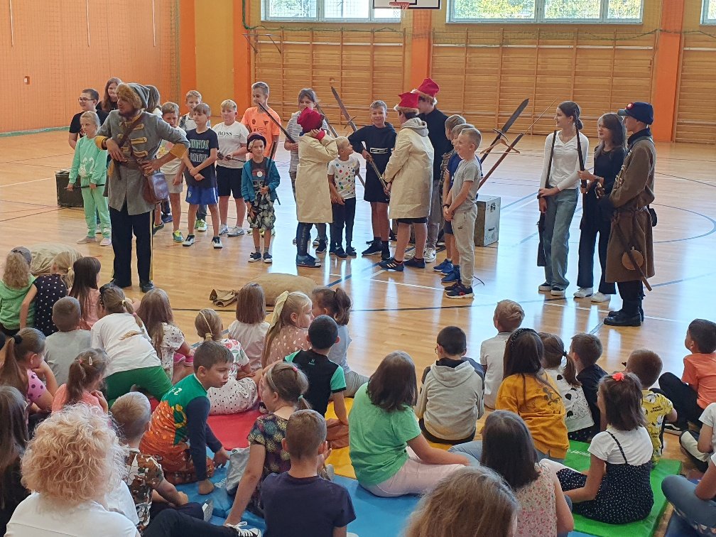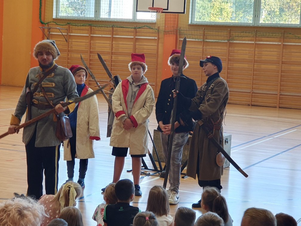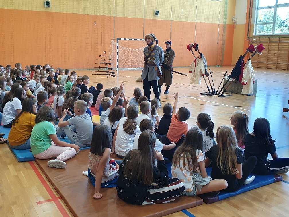 W naszej szkole 15 września na hali widowiskowo – sportowej odbyła się lekcja historii na temat drogi Polski do niepodległości. Kolejny raz zawitała do nas grupa „Rekonstrukto”. Tym razem przenieśliśmy się do czasów rozbiorów i powstań narodowych. Panowie ubrani w stroje z czasów Powstania Styczniowego za pomocą różnych rekwizytów przedstawili zebranym uczniom historyczne wydarzenia. Taka forma zdobywania wiedzy na długo pozostanie nam w pamięci.