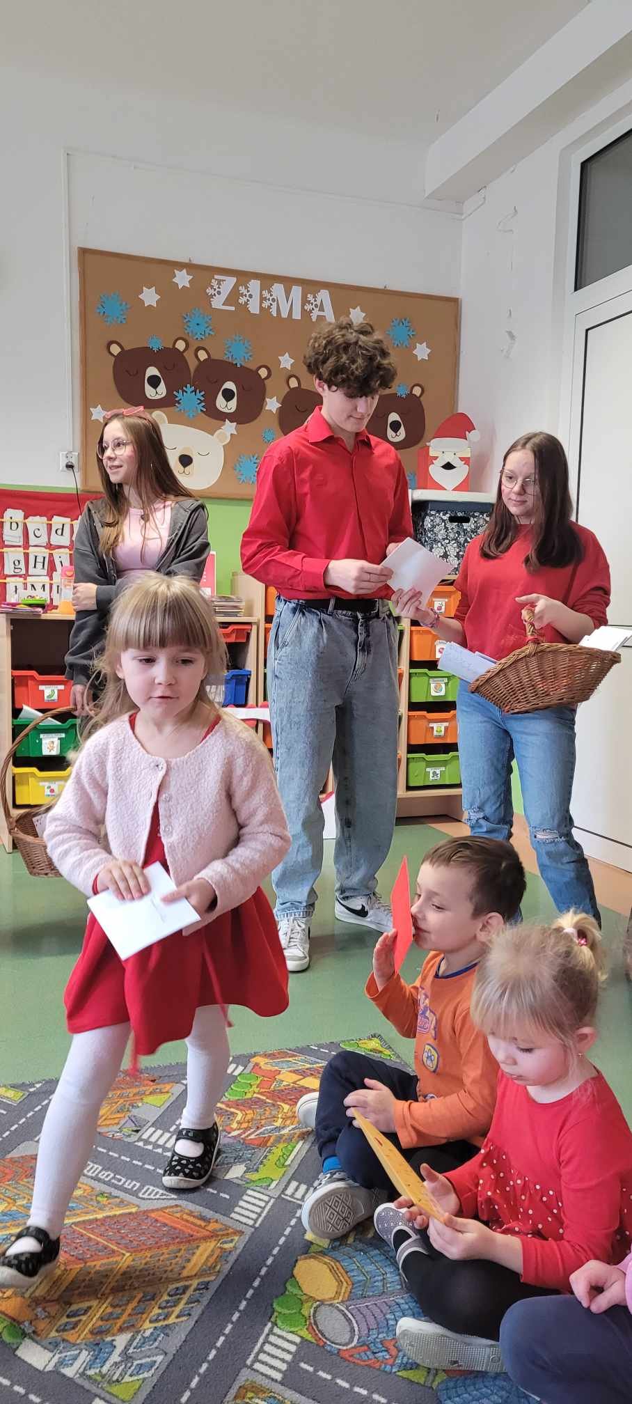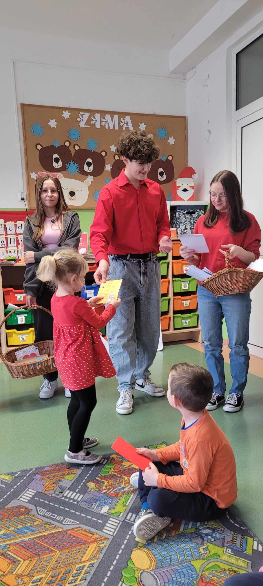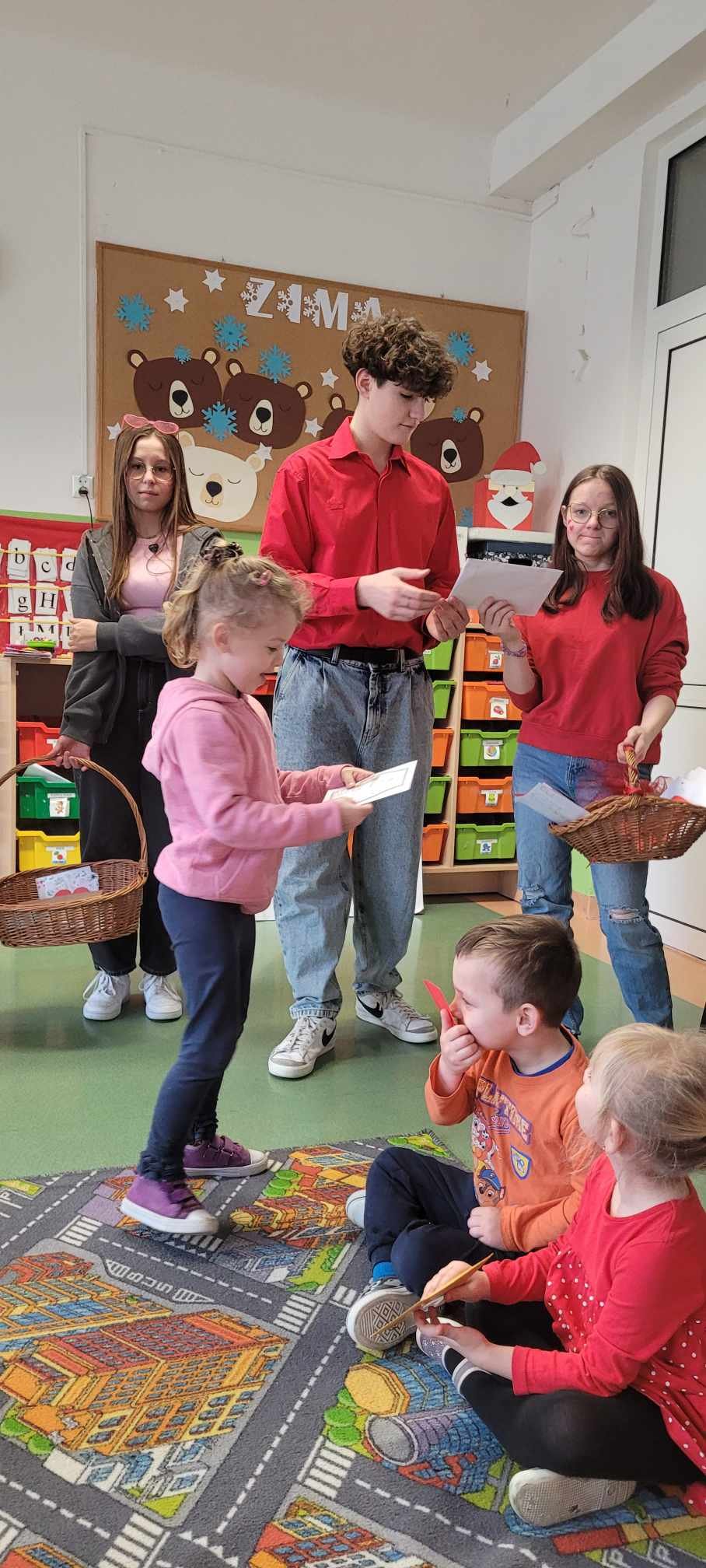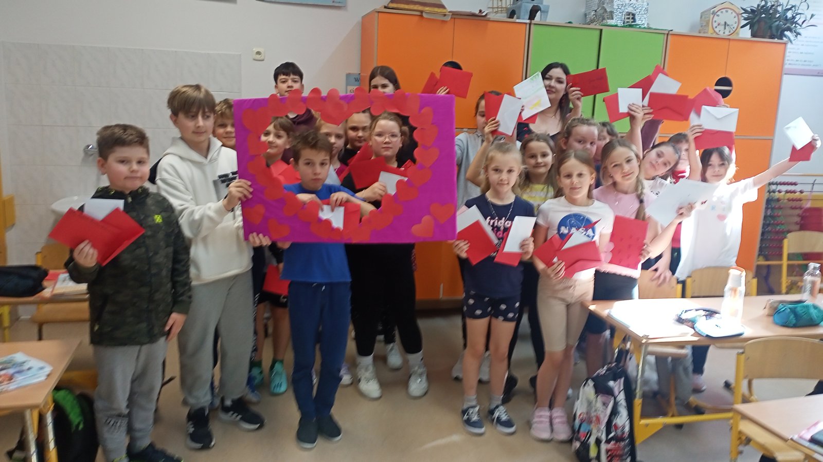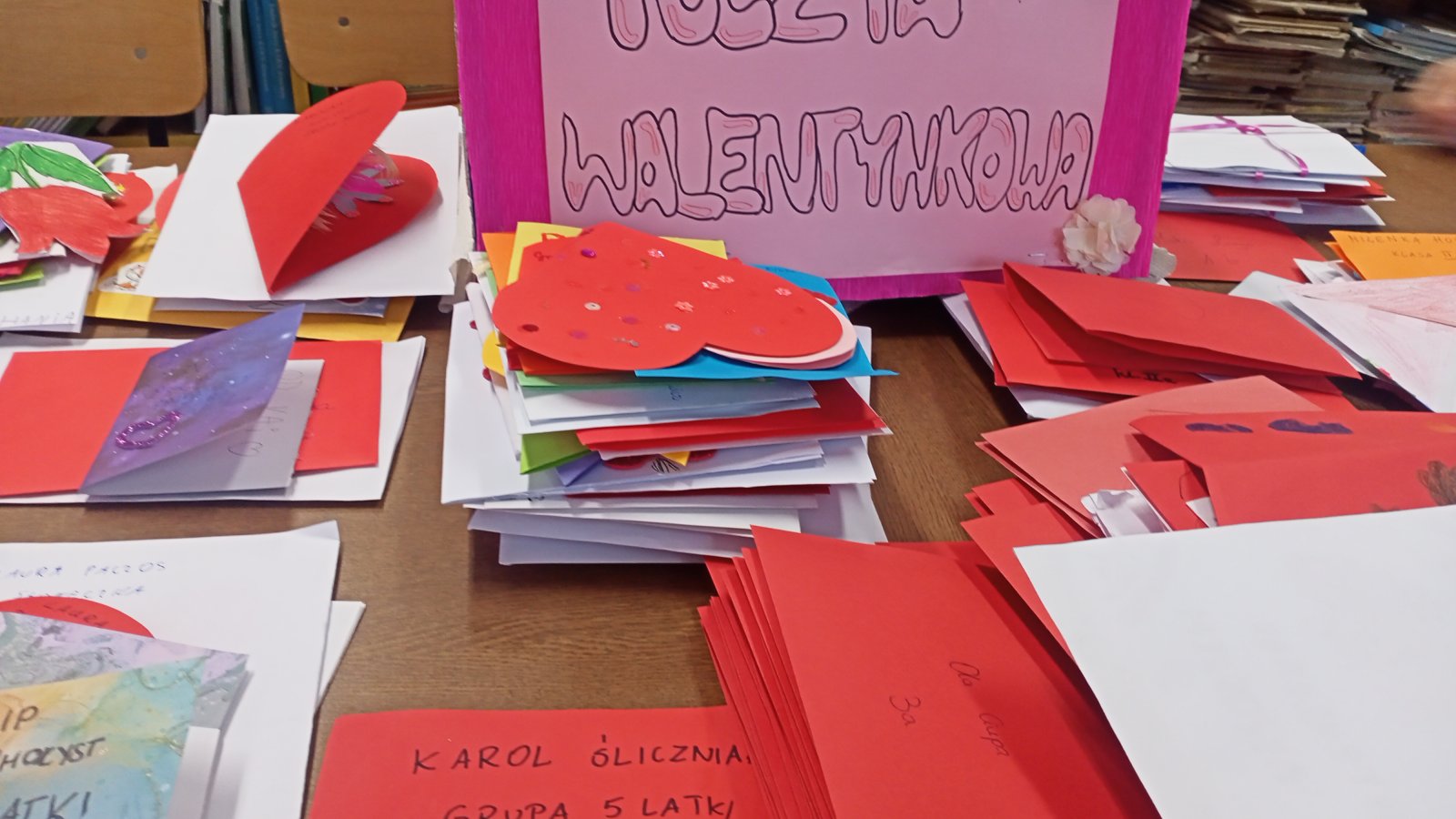 Poczta Walentynowa zorganizowana została w tym roku przez bibliotekę szkolną i Samorząd Uczniowski. W środę 14 lutego 2024 roku wyruszyła poczta walentynkowa. W zabawie brali udział uczniowie klas I - VIII Szkoły Podstawowej oraz grupy przedszkolne. Celem przedsięwzięcia była integracja młodzieży szkolnej, umacnianie więzów przyjaźni, promowanie umiejętności okazywania pozytywnych uczuć oraz rozwijanie kreatywności uczniów. W bibliotece szkolnej od 26 stycznia została ustawiona skrzynka walentynkowa, do której uczniowie mogli wrzucać kartki lub miłe liściki. Ważne, by serduszko było odpowiednio zaadresowane, imieniem i nazwiskiem oraz klasą. W środę na czwartej i piątej godzinie lekcyjnej została otworzona skrzynka, kartki zostały policzone i dostarczone adresatom do rąk własnych. Poczta cieszyła się dużym zainteresowaniem. Uczniowie wrzucili 368 kartek adresowanych do przedszkolaków, uczniów, nauczycieli oraz pracowników szkoły. Najwięcej kartek otrzymali uczniowie z klasy IIIa - 65.