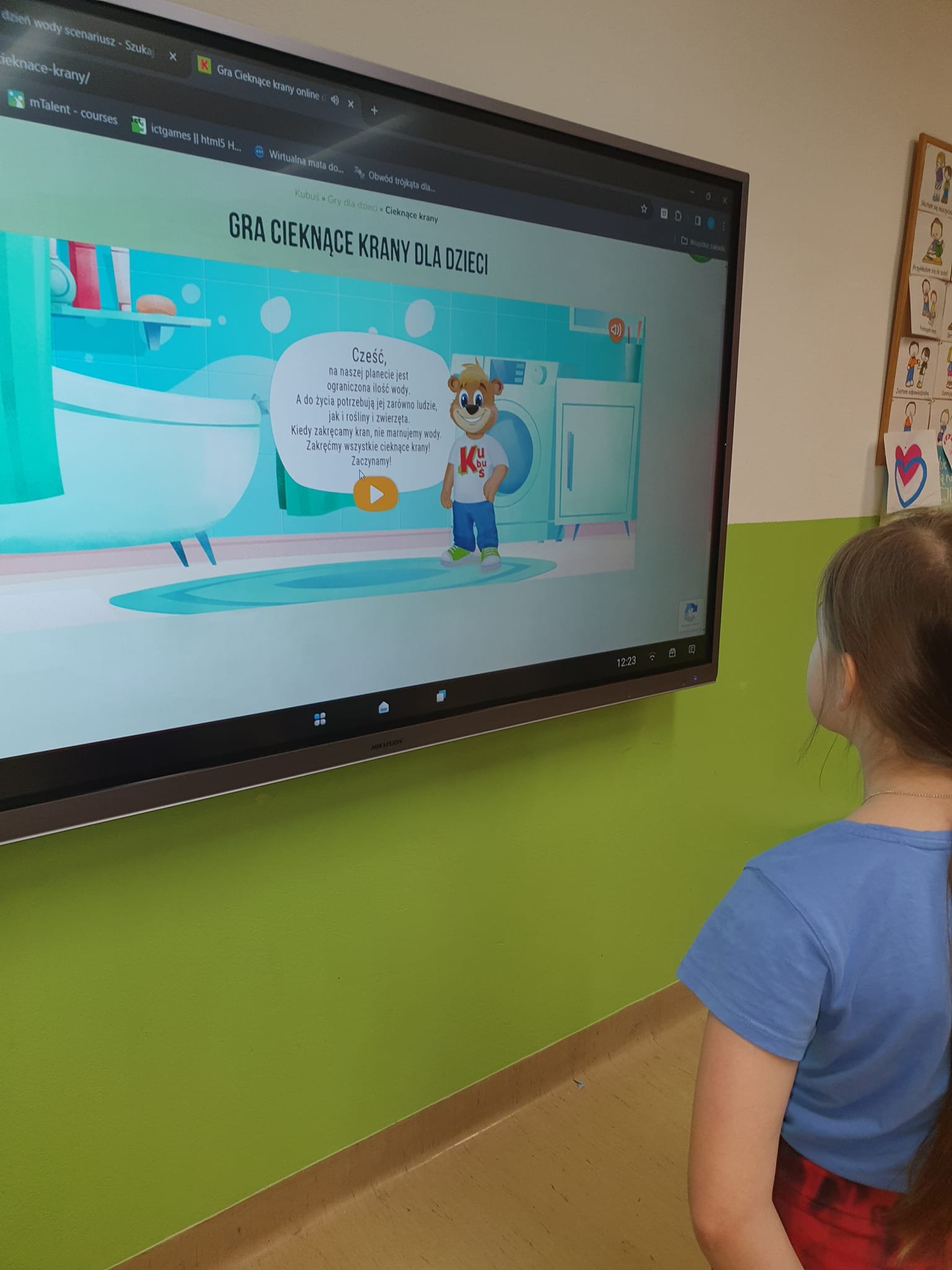 Uczniowie ze Szkolnego Koła Ekologicznego uczestniczyli w lekcjach poświęconych problemom związanym z wodą na całym świecie. Podczas zajęć uczniowie obejrzeli filmy pt.:"Cykl hydrologiczny" i "Obieg wody w przyrodzie" , uzupełniali karty pracy i wykonali tematyczne rysunki. Dowiedzieli się co jest wirtualna woda, gdzie na świecie brakuje wody pitnej, jak temu można zaradzić. Rozmawiali również o tym co mogą zrobić, jakie podjąć działania, jak zmienić codzienne nawyki, żeby oszczędzać wodę.