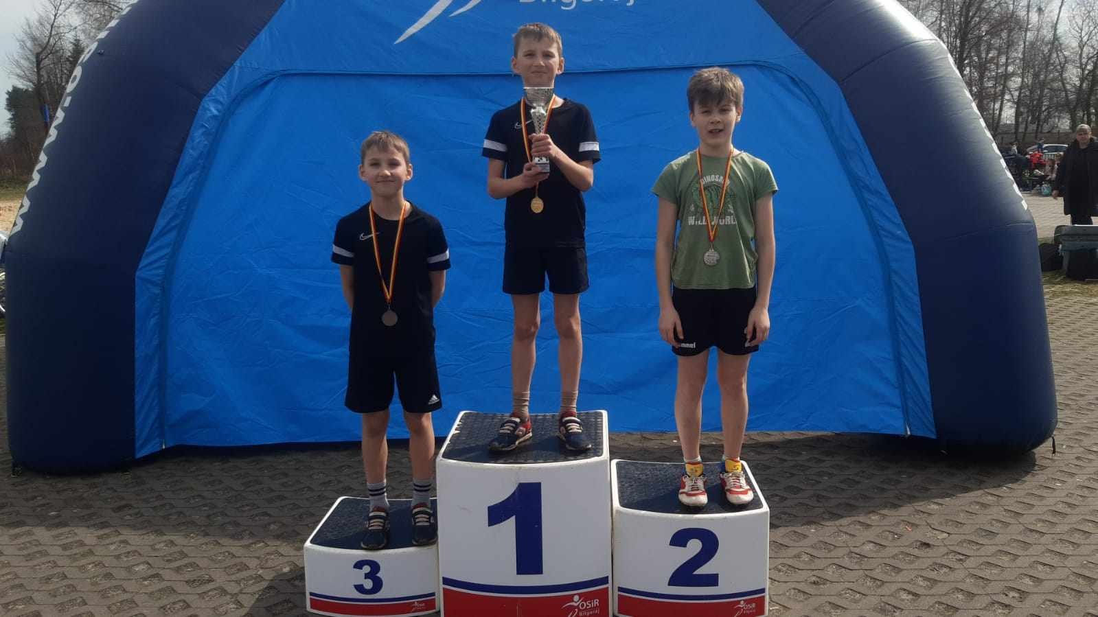 Z sukcesami i medalami wrócili nasi reprezentanci z Igrzysk Dzieci w biegach przełajowych, które odbyły się 27 marca w Biłgoraju. Gwiazdami naszej reprezentacji byli Hanna Małyszek mistrzyni na 600 m oraz wicemistrzowie Michał Małek (800 m) i Maciej Kołodziej (1000 m). Znaczący wynik wybiegała Julia Stachyra V w biegu na 800 m. Dobre wyniki pozostałych zawodników zaowocowały wysokimi miejscami w klasyfikacji drużynowej. III miejsce zajęły dziewczynki z klas IV i mł. oraz chłopcy V, VI. Miejsce niżej chłopcy z klas IV i mł. oraz dziewczęta V, VI. Naszych medalistów wspierali: Zuzanna Paluch, Zuzanna Błazik, Julia Mazur, Maja Basiak, Kornelia Wach, Patrycja Małer, Nikola Frelas, Oliwia Bielak, Oliwia Zdunek, Zuzanna Kiełbasa, Kacper Saj, Jan Śliwiński, Filip Szczepanik, Karol Kwapisz, Szymon Kubina, Mateusz Marczak, Marcel Garbacz, Zuzanna Jasińska, Emilia Śliwińska, Maja Omiotek, Natalia Myszak, Karolina Małer, Gabriela Grabowska, Aleksandra Maciurzyńska, Oliwia Dyl, Maja Nita, Magda Anuszkiewicz, Miłosz Lipiński, Mikołaj Bednarz, Krystian Małyszek, Damian Karczmarzyk. Gratulujemy udanego rozpoczęcia sezonu LA i trzymamy kciuki za naszych medalistów w półfinale wojewódzkim.