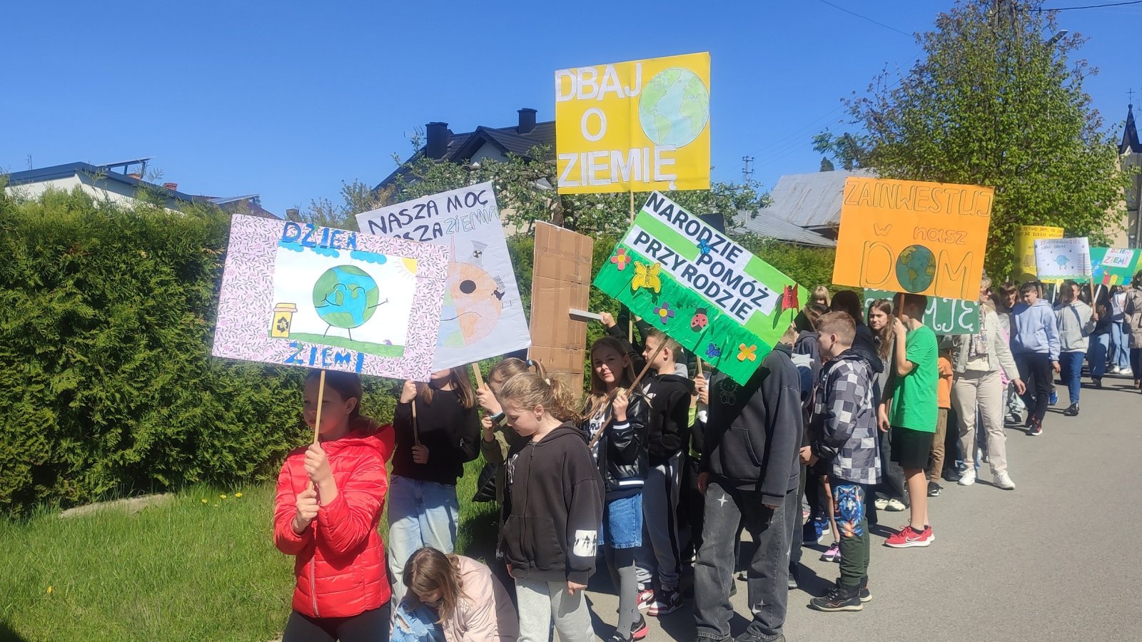Z okazji obchodów Dnia Ziemi zorganizowaliśmy happening propagujący szanowanie zieleni, segregowanie odpadów oraz ochronę lasów które są płucami Ziemi. Uczniowie przygotowali i zaprezentowali barwne plakaty, kolorowe transparenty, ciekawe przemyślenia i teksty związane z ochroną środowiska. Zaprezentowaliśmy je w poniedziałek 28 kwietnia 2025 roku maszerując ulicami miasta, recytując hasła, śpiewając piosenki. Akcja jak co roku cieszyła się ogromnym zainteresowaniem mieszkańców. Piękna pogoda dopisała, a my mamy nadzieję, że apel wpłynie na zachowanie ludzi wobec przyrody w naszej Młej Ojczyźnie.