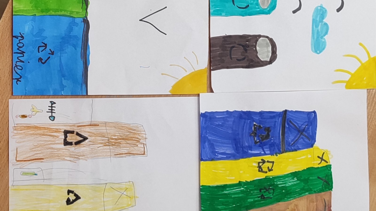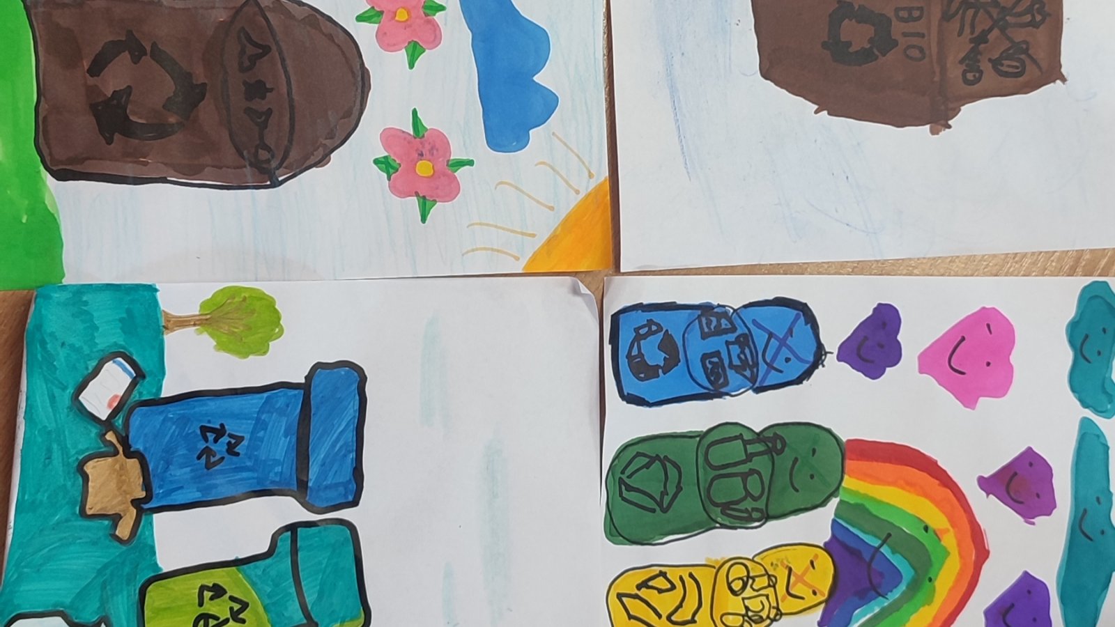 Dzisiaj nasi najmłodsi uczniowie wzięli udział w akcji sprzątania terenu wokół szkoły. Zanim chwycili za worki i rękawiczki, obejrzeli film edukacyjny o segregowaniu śmieci. Po seansie wykonali piękne rysunki, które pokazały, jak rozumieją troskę o środowisko.