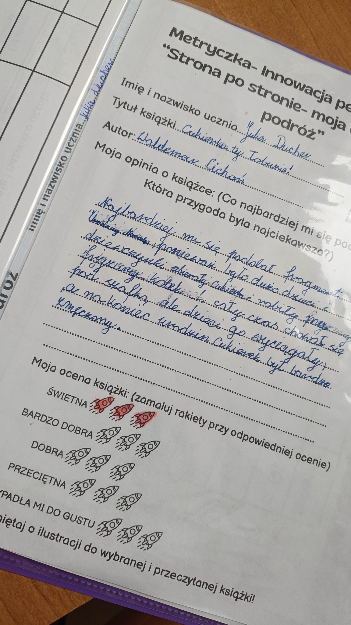 Innowacja pedagogiczna klasy III a "Strona po stronie moja-czytelnicza podróż".