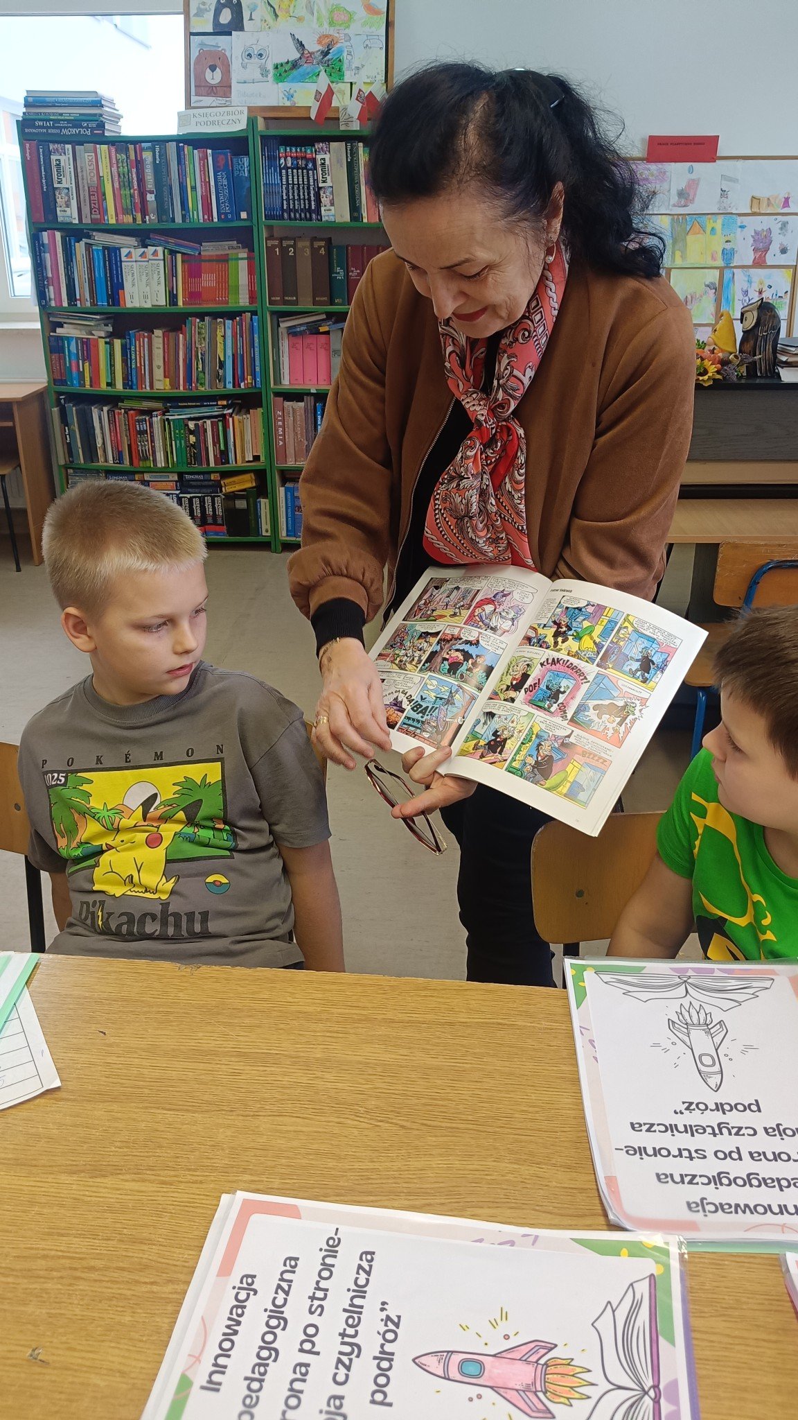 Celem innowacji jest doskonalenie umiejętności czytania, rozwijanie swobody wypowiedzi oraz wzbudzanie radości z obcowania z książką. Wychowawca wraz z Pani Marysią z dumą obserwuje, jak uczniowie coraz chętniej sięgają po lektury i z entuzjazmem o nich opowiadają!