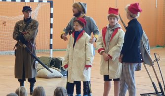 2023-09-15 Pokaz historyczny W naszej szkole 15 września na hali widowiskowo – sportowej odbyła się lekcja historii na temat drogi Polski do niepodległości. Kolejny raz zawitała do nas grupa „Rekonstrukto”. Tym razem przenieśliśmy się do czasów rozbiorów i powstań narodowych. Panowie ubrani w stroje z czasów Powstania Styczniowego za pomocą różnych rekwizytów przedstawili zebranym uczniom historyczne wydarzenia. Taka forma zdobywania wiedzy na długo pozostanie nam w pamięci. Czytaj dalej >